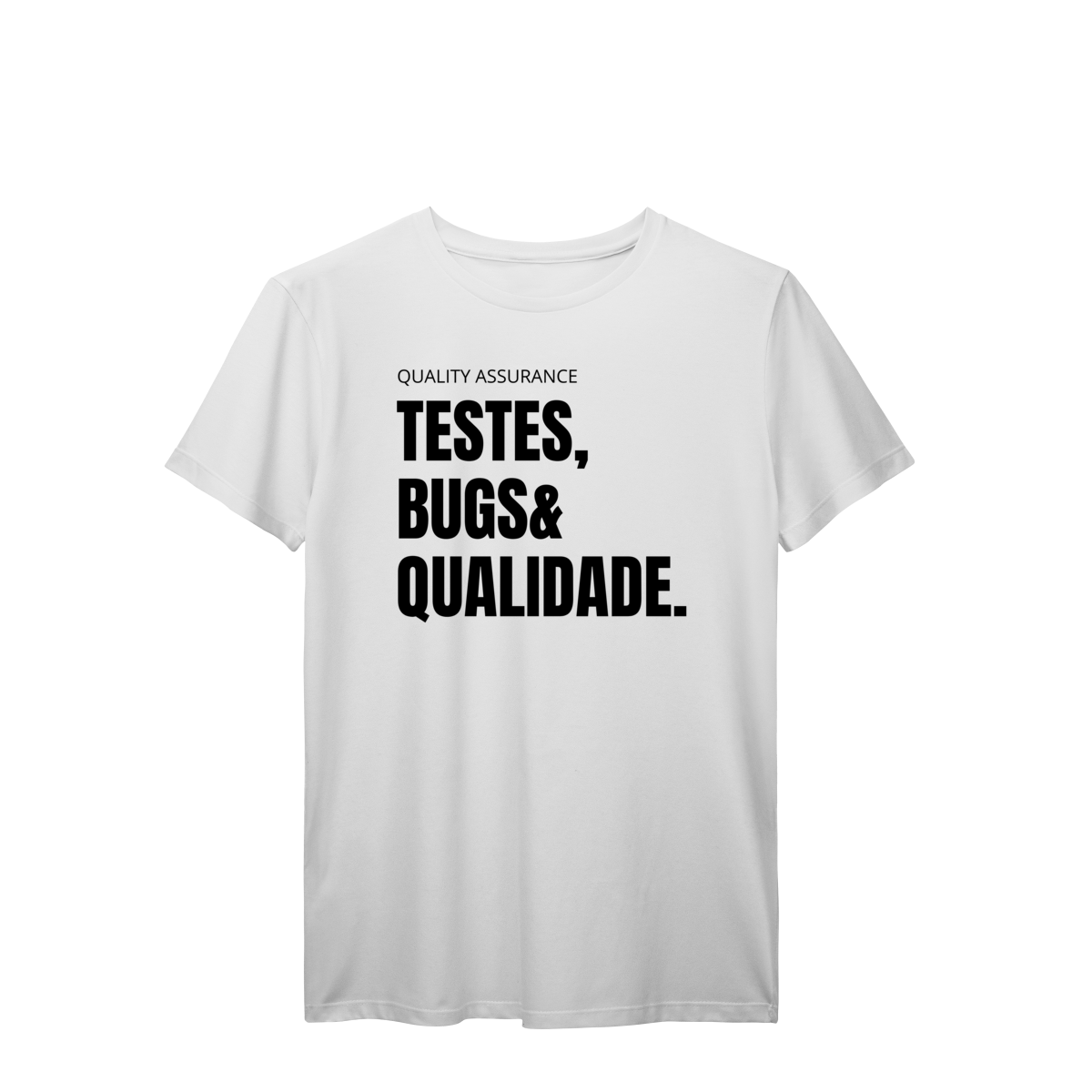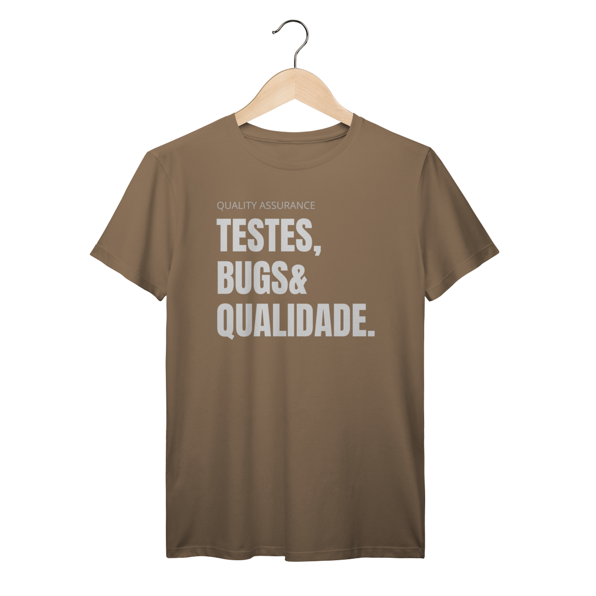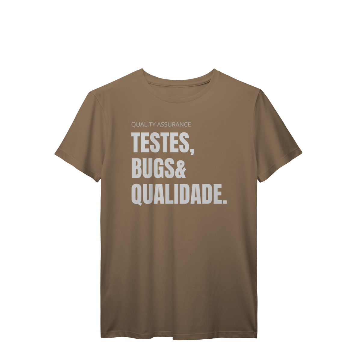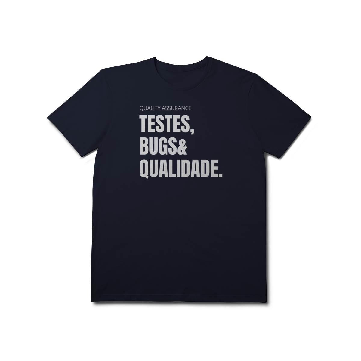 Com o design “Testes, Bugs & Qualidade”, essa peça celebra o trio que define o dia a dia de qualquer QA — do júnior ao sênior.