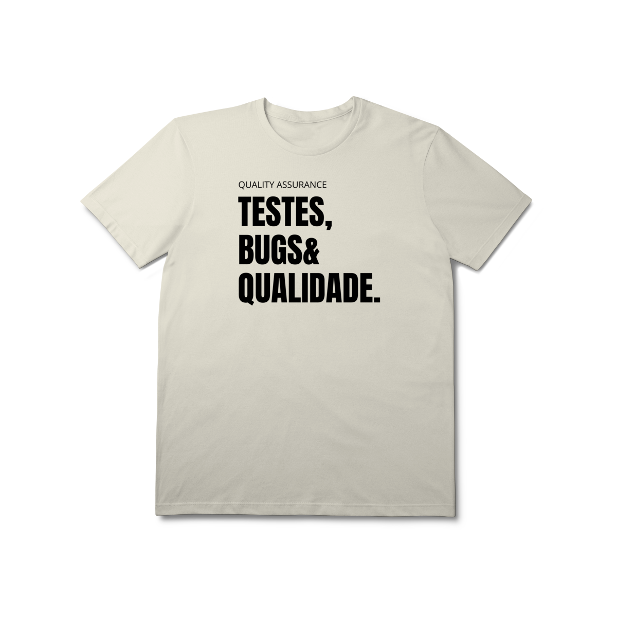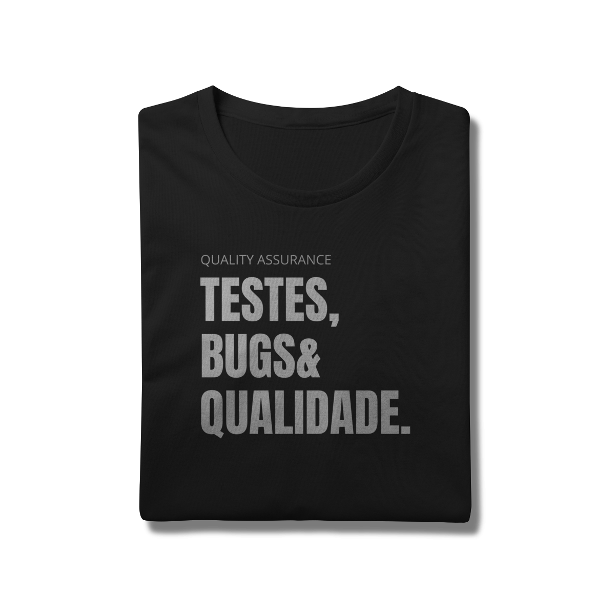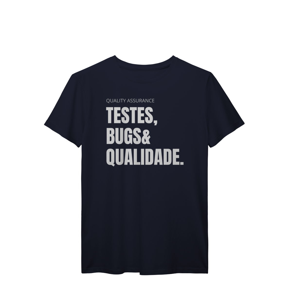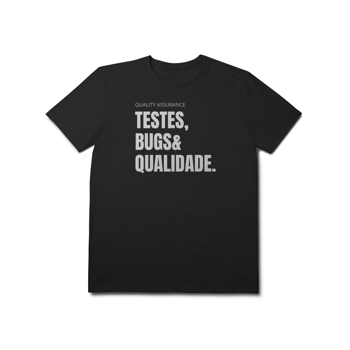 Com o design “Testes, Bugs & Qualidade”, essa peça celebra o trio que define o dia a dia de qualquer QA — do júnior ao sênior.