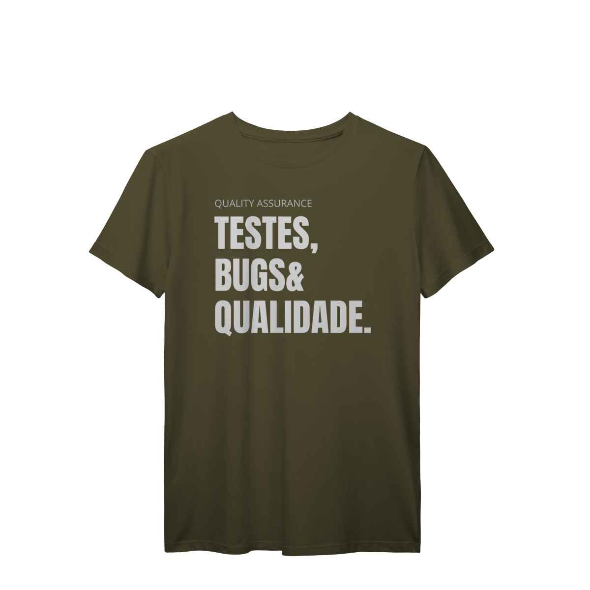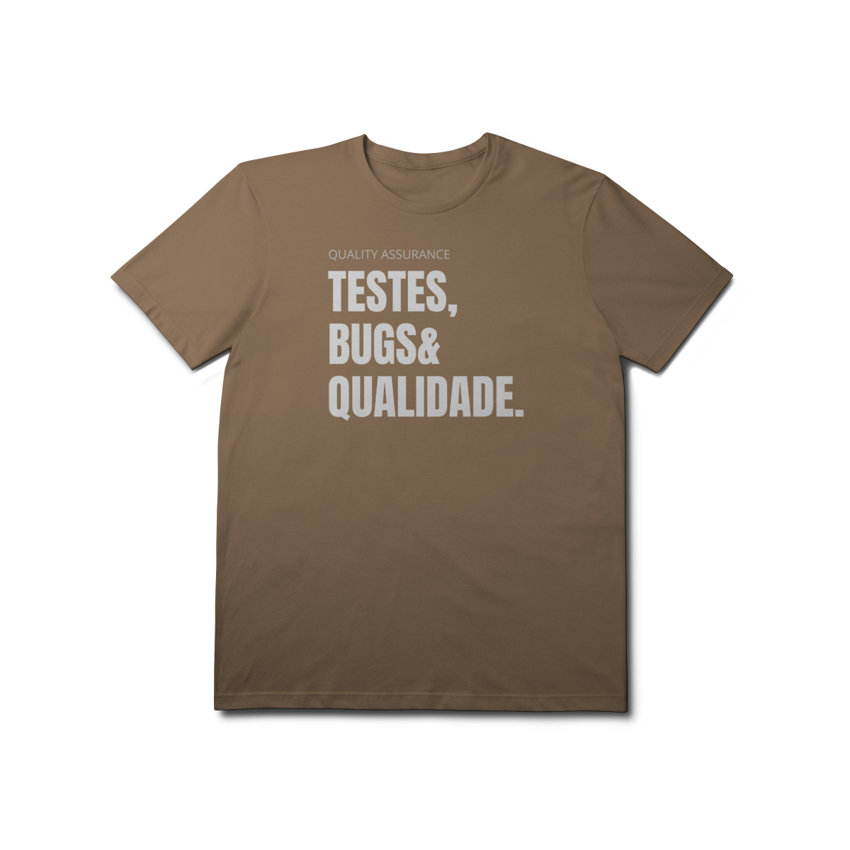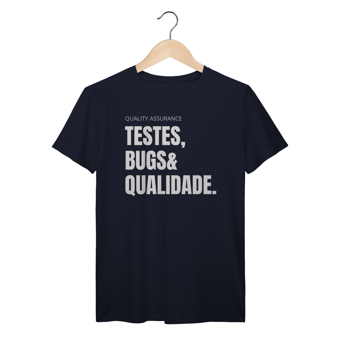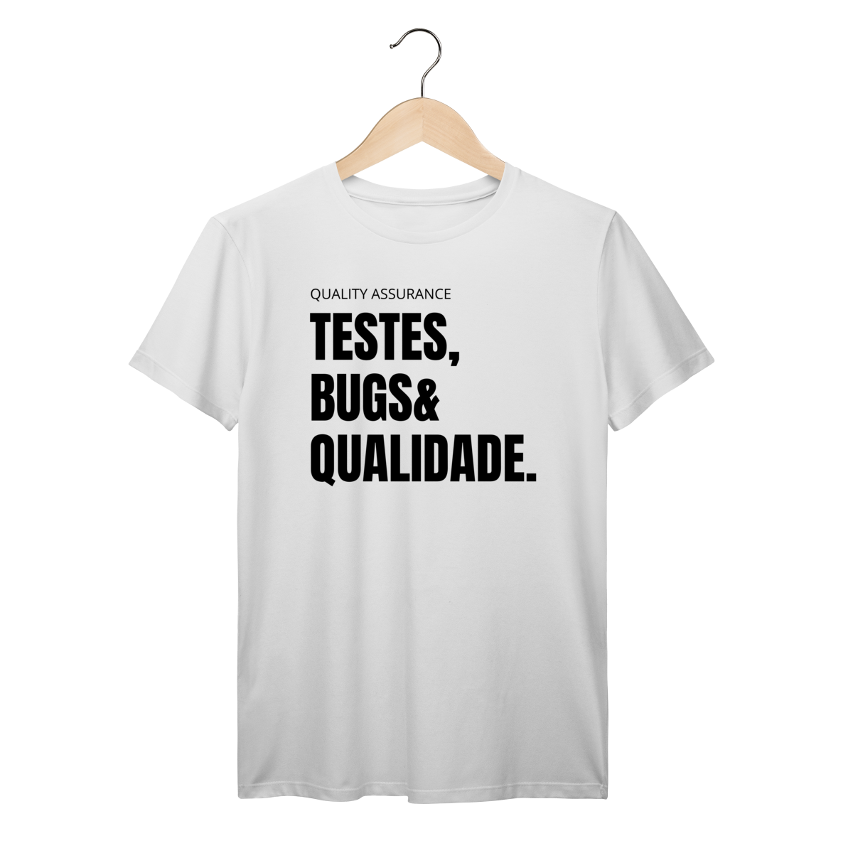 Com o design “Testes, Bugs & Qualidade”, essa peça celebra o trio que define o dia a dia de qualquer QA — do júnior ao sênior.