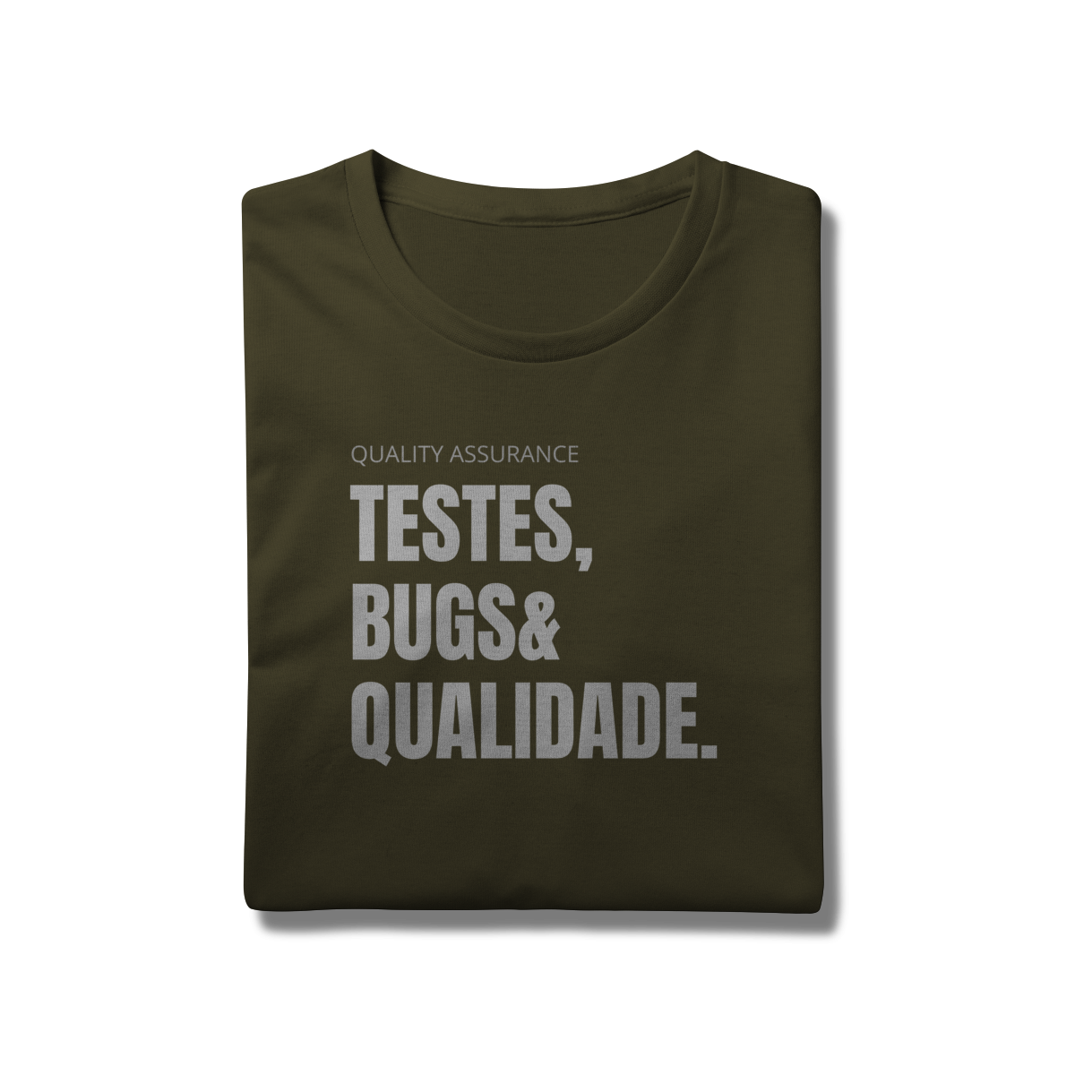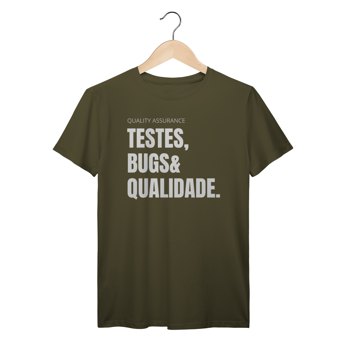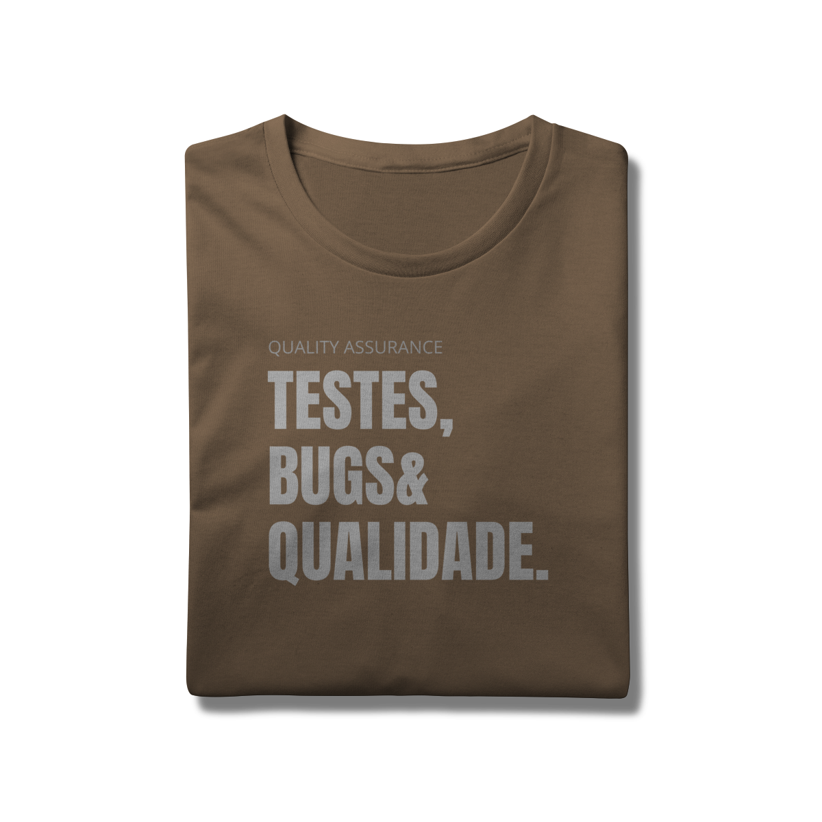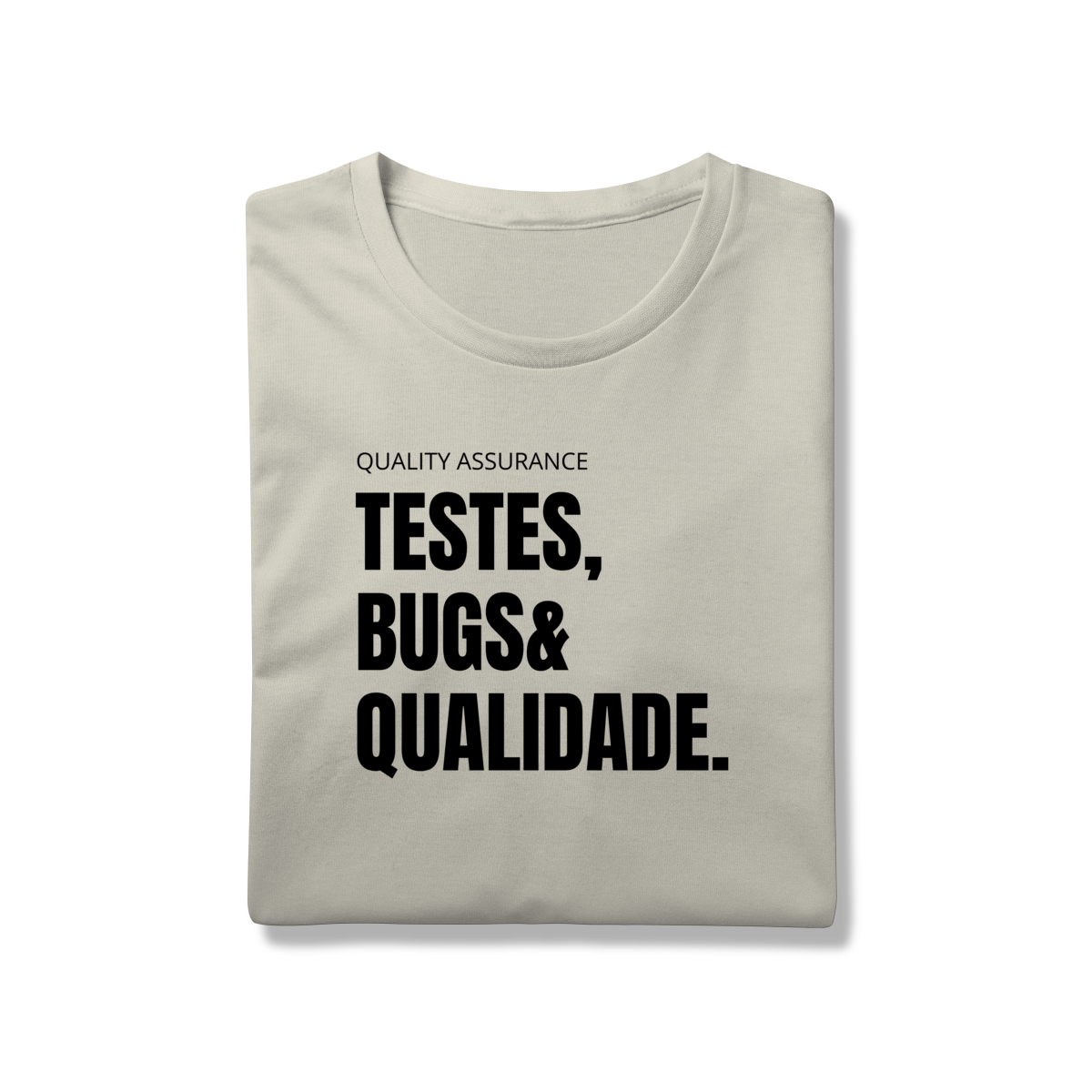 Com o design “Testes, Bugs & Qualidade”, essa peça celebra o trio que define o dia a dia de qualquer QA — do júnior ao sênior.