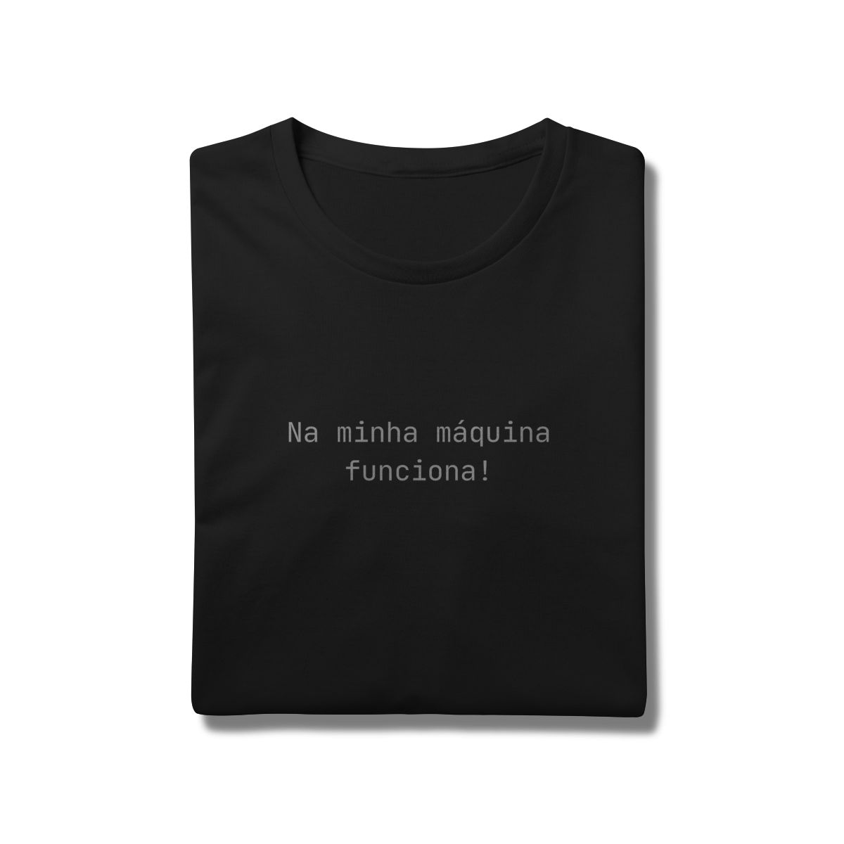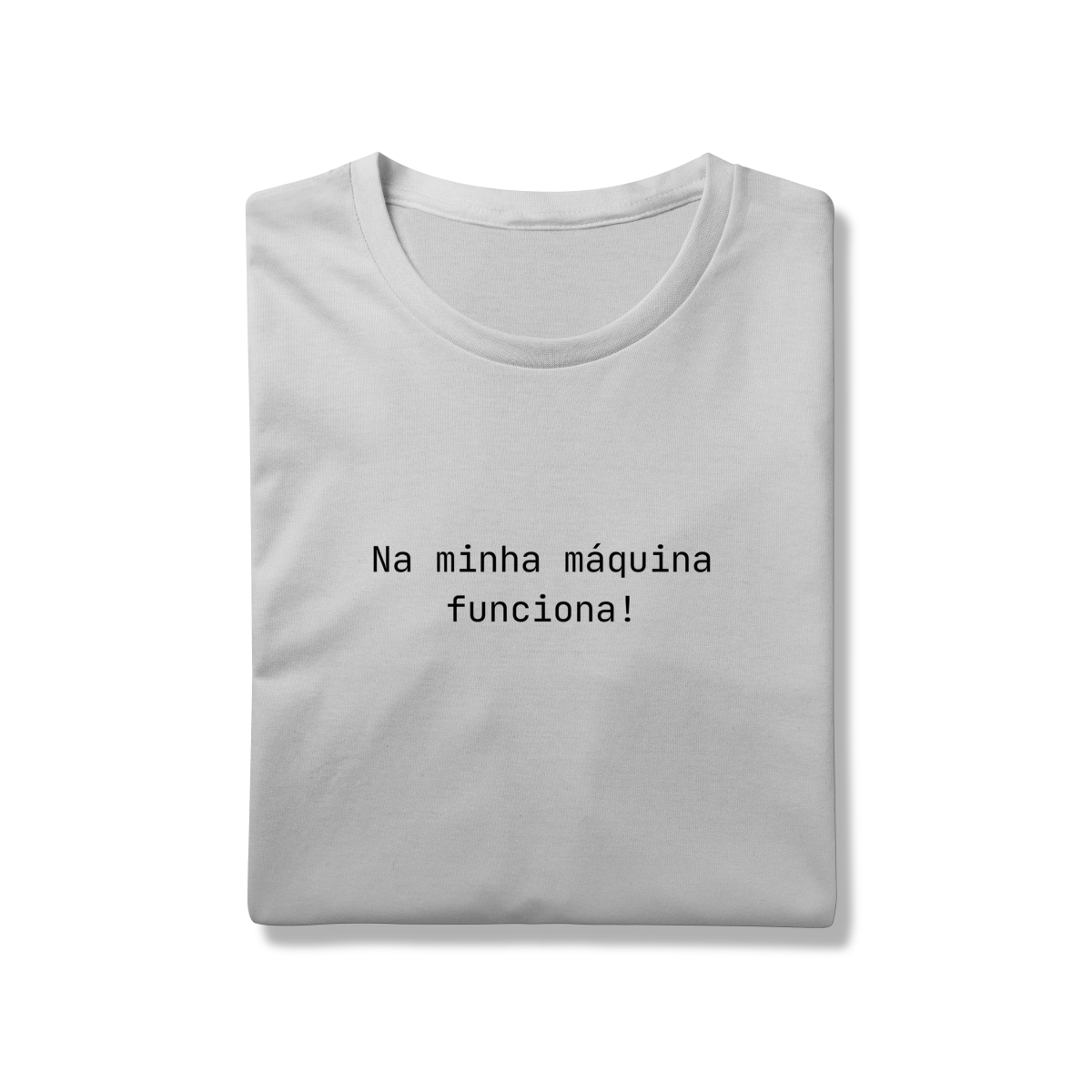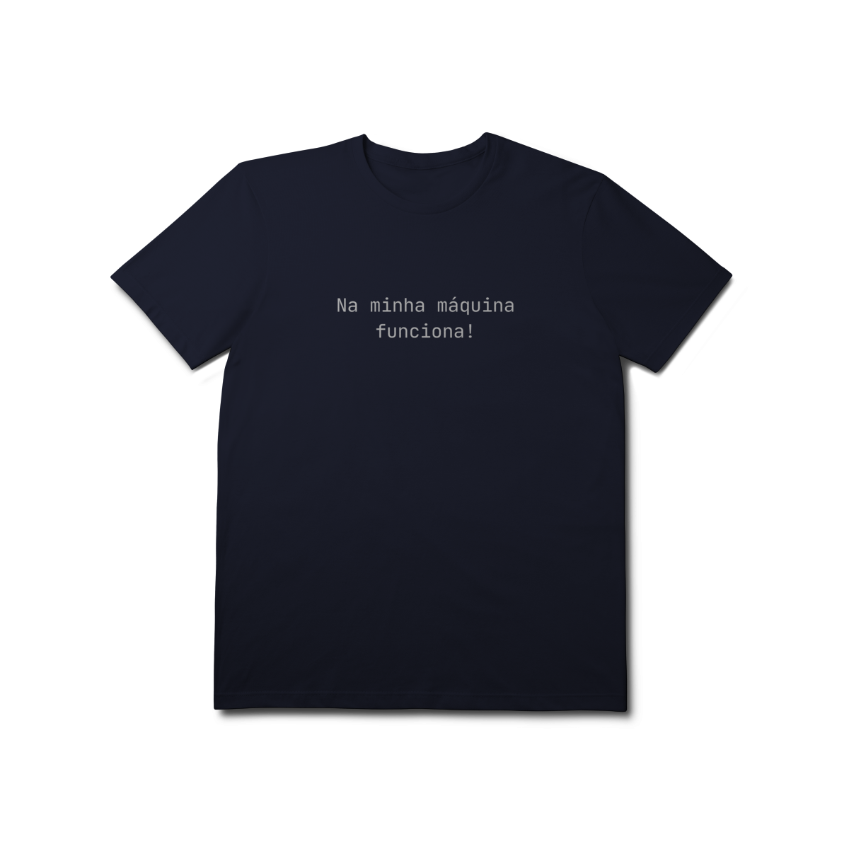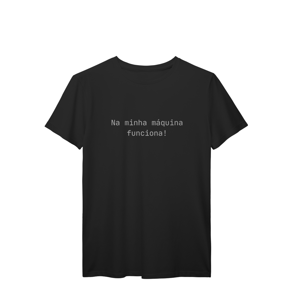 A camiseta Na minha máquina funciona é feita para devs, profissionais de TI e qualquer pessoa que já depurou um problema que não era exatamente um problema.