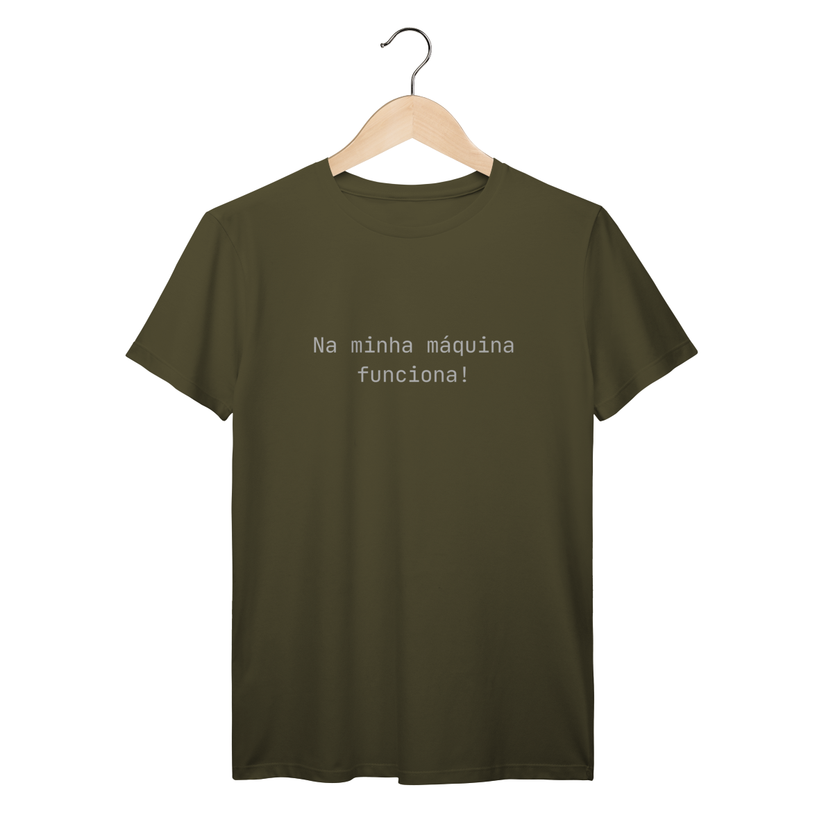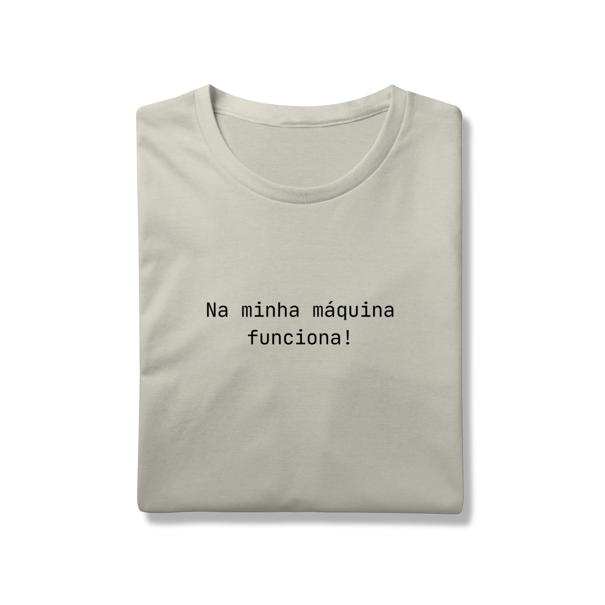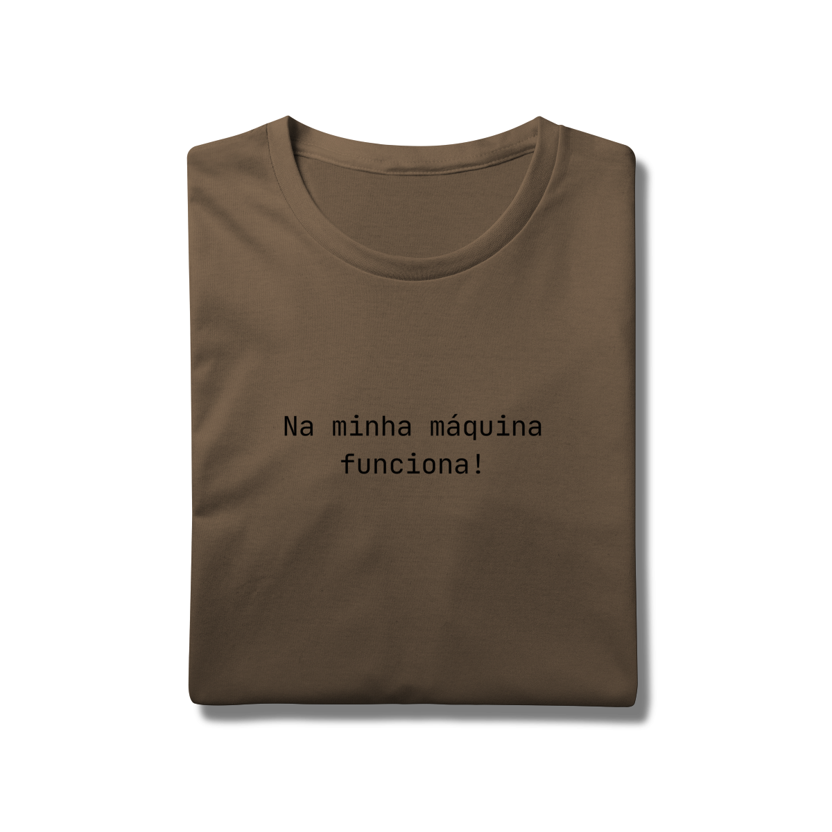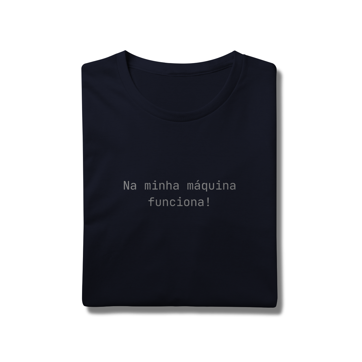 A camiseta Na minha máquina funciona é feita para devs, profissionais de TI e qualquer pessoa que já depurou um problema que não era exatamente um problema.