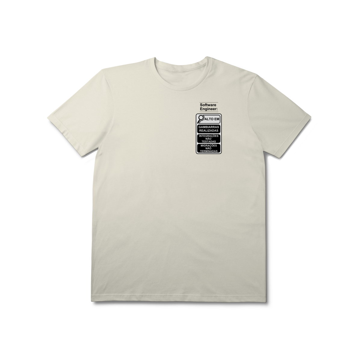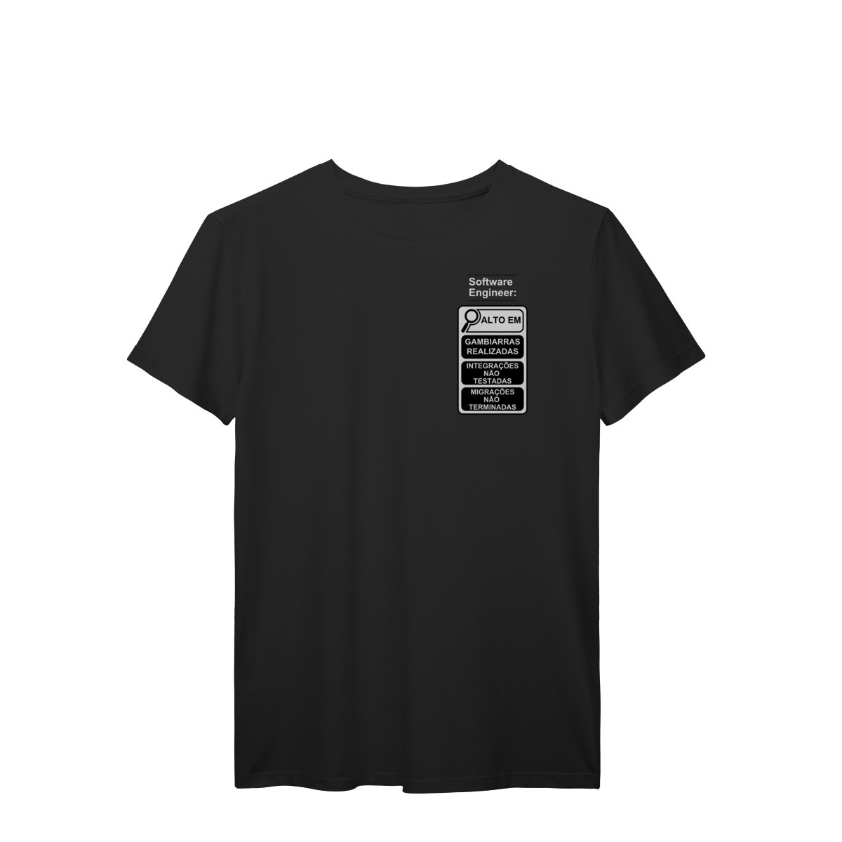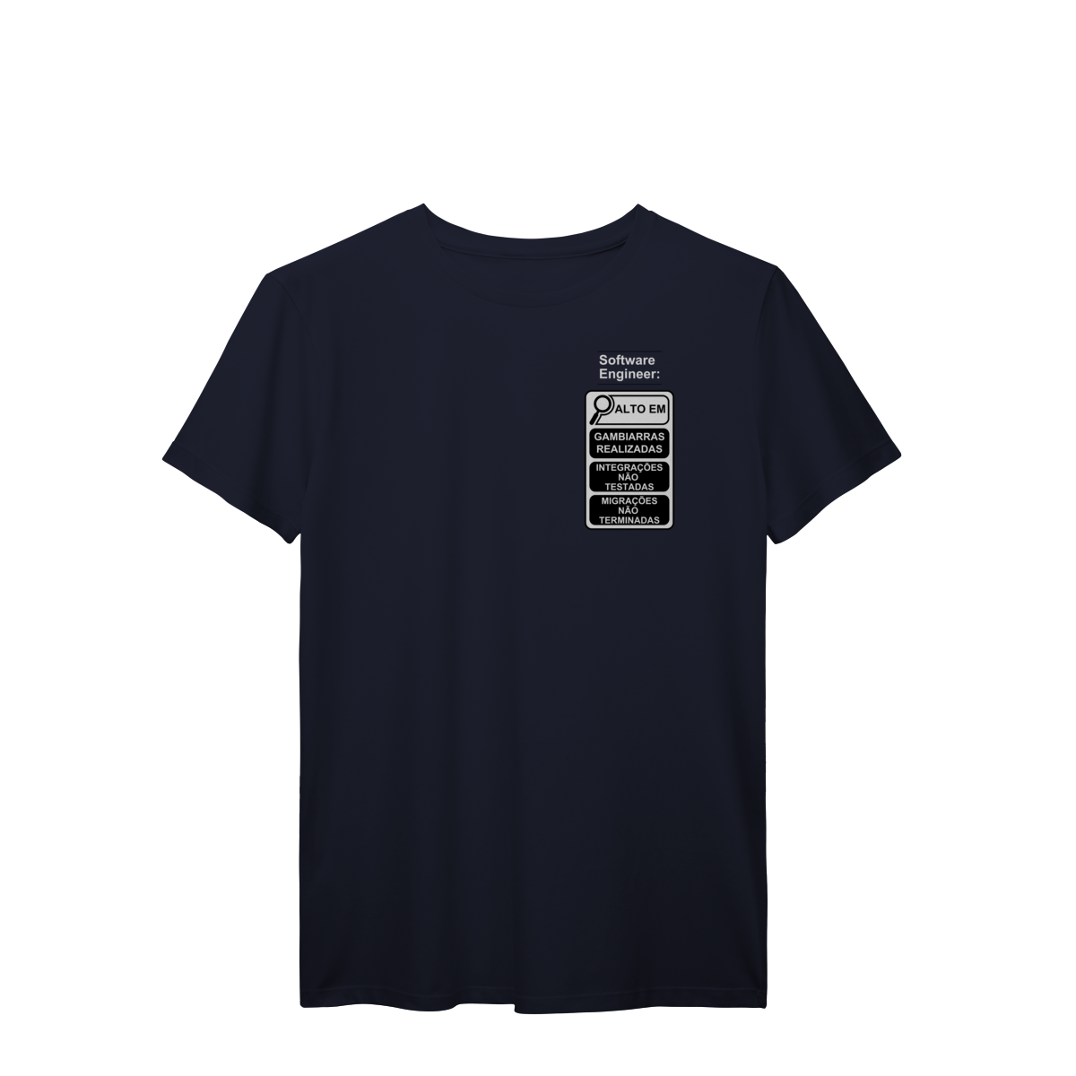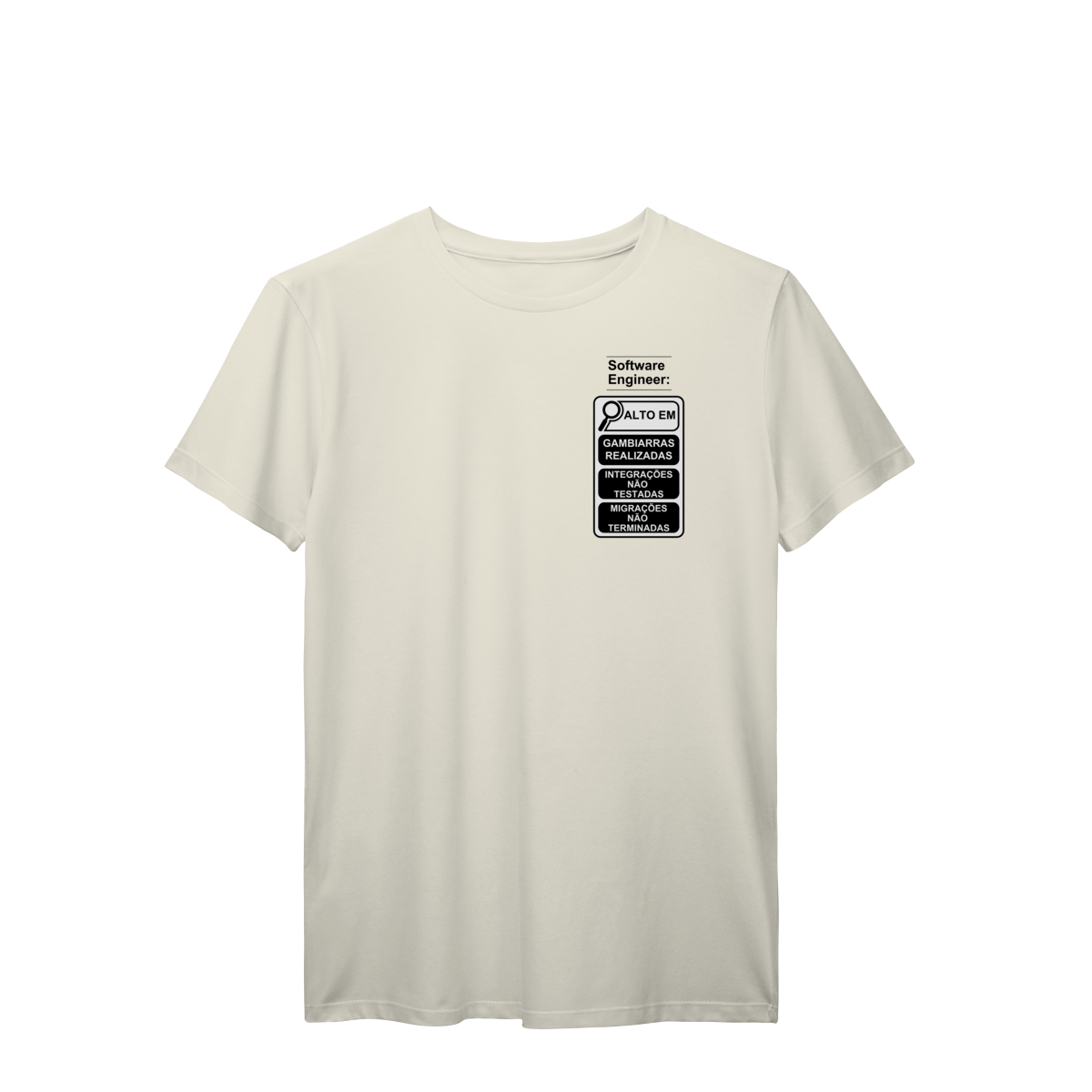 Com o estilo inspirado nos novos rótulos brasileiros, essa peça traz um humor inteligente que só quem é dev entende de verdade.