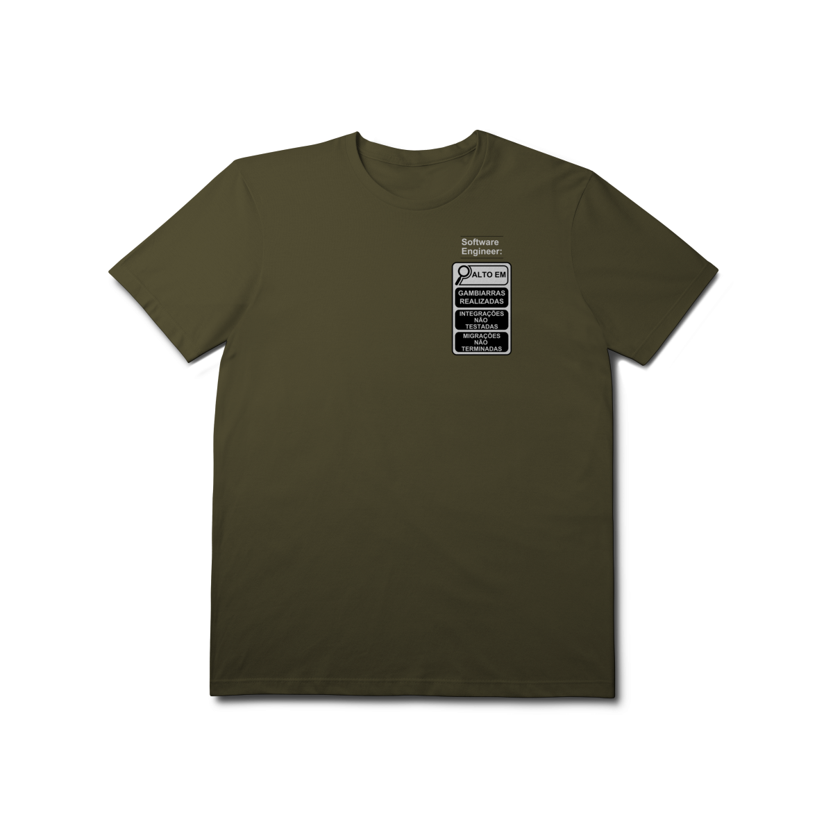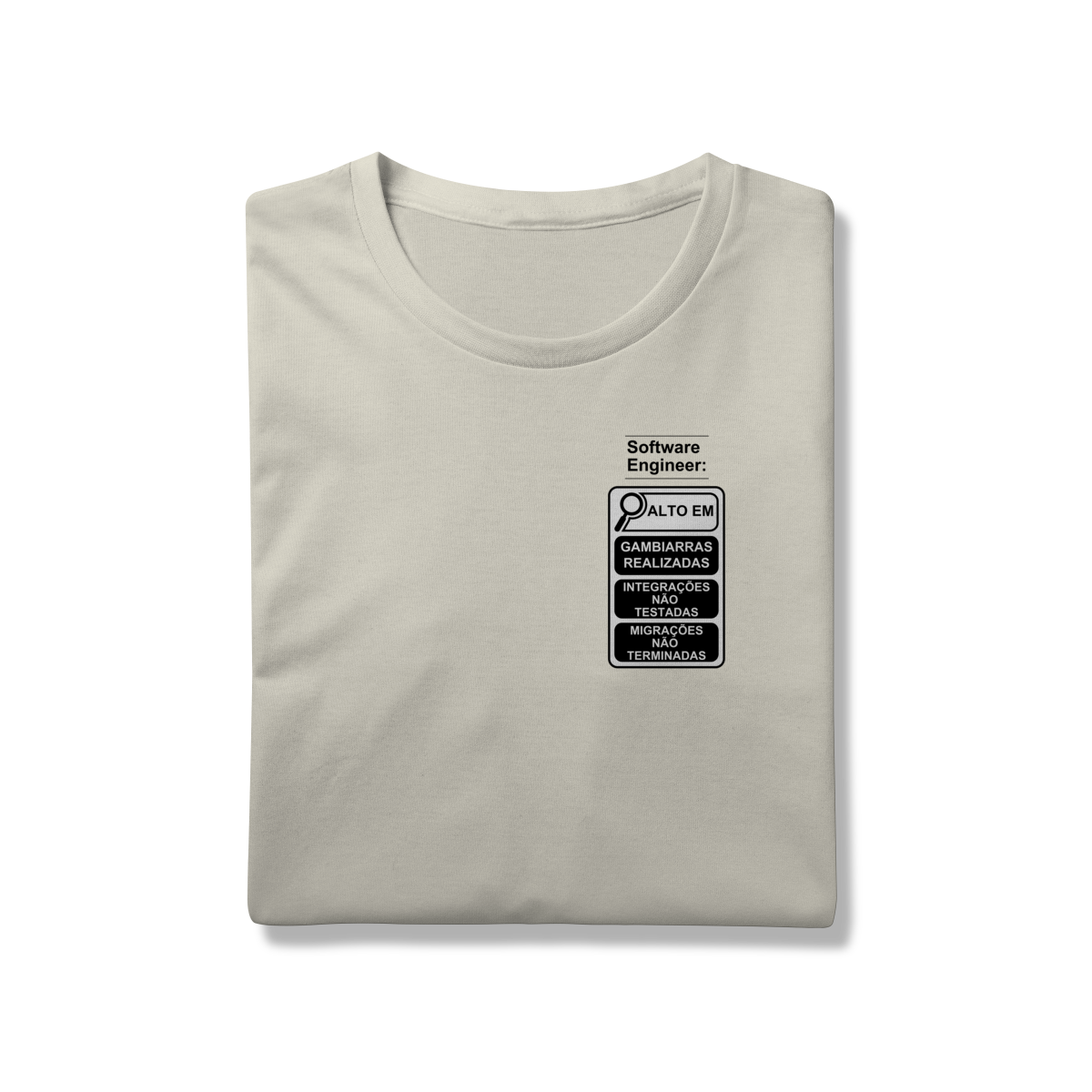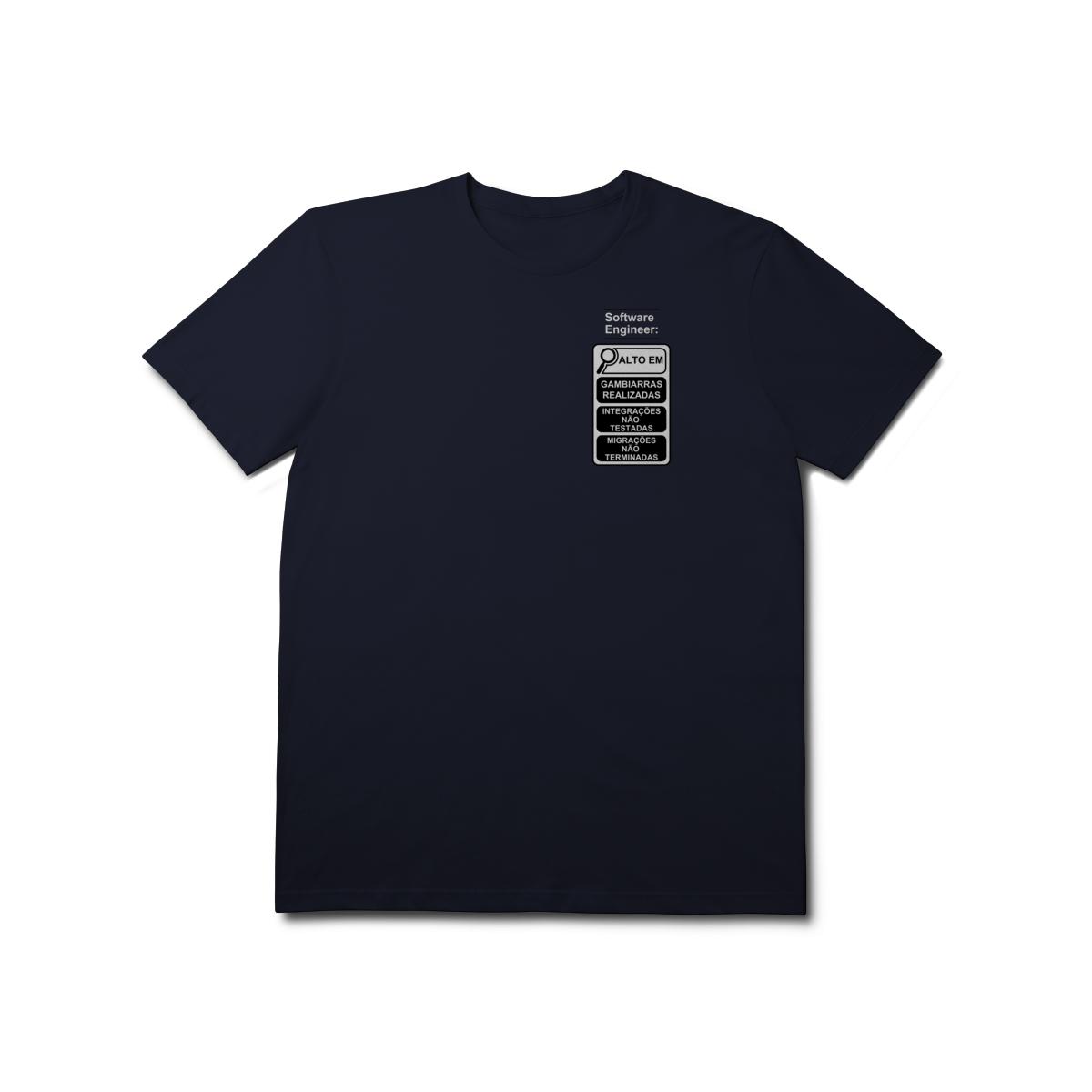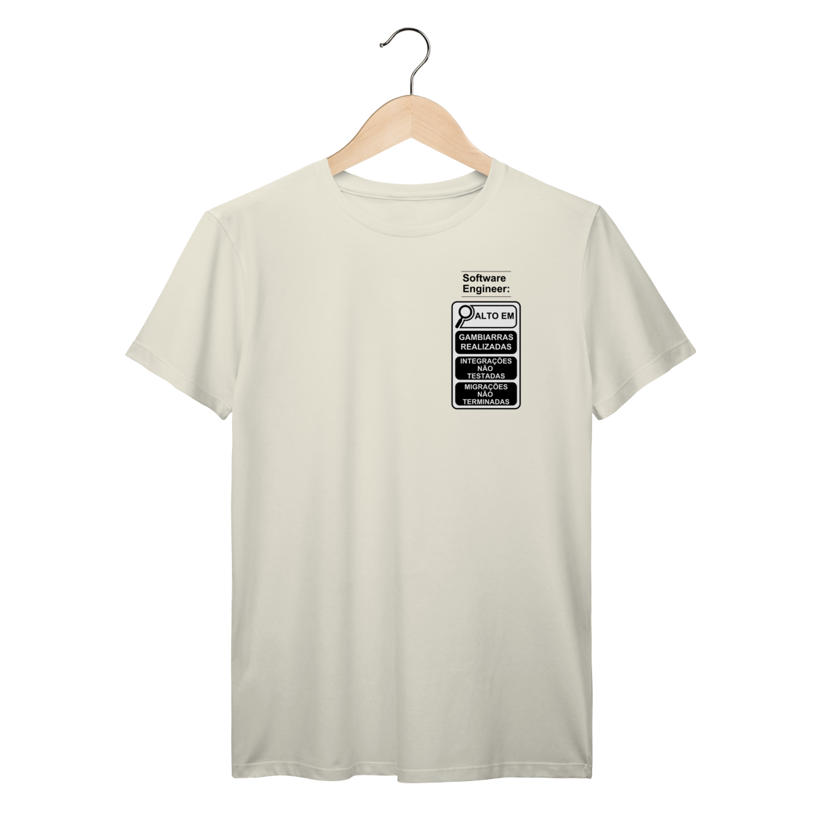 Com o estilo inspirado nos novos rótulos brasileiros, essa peça traz um humor inteligente que só quem é dev entende de verdade.