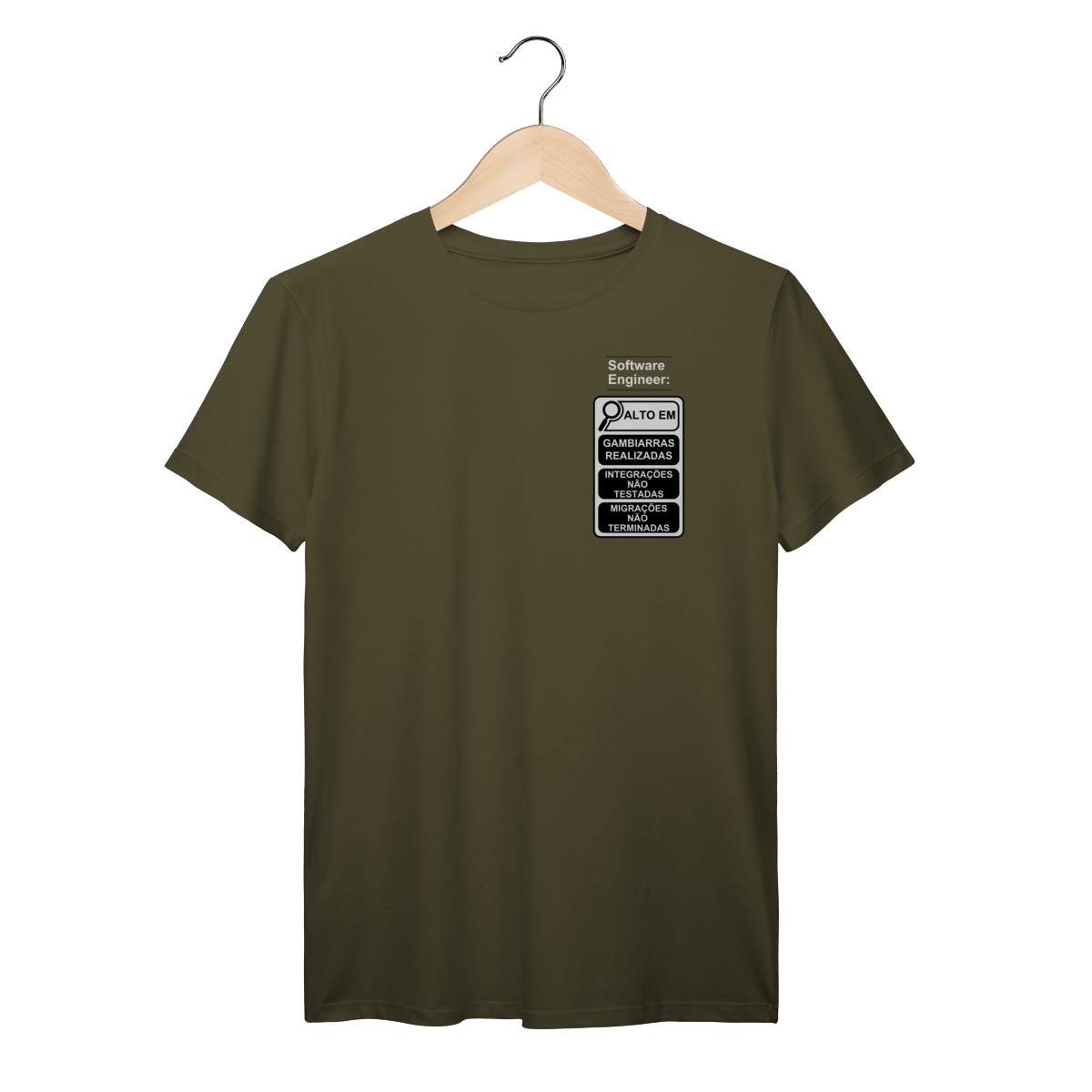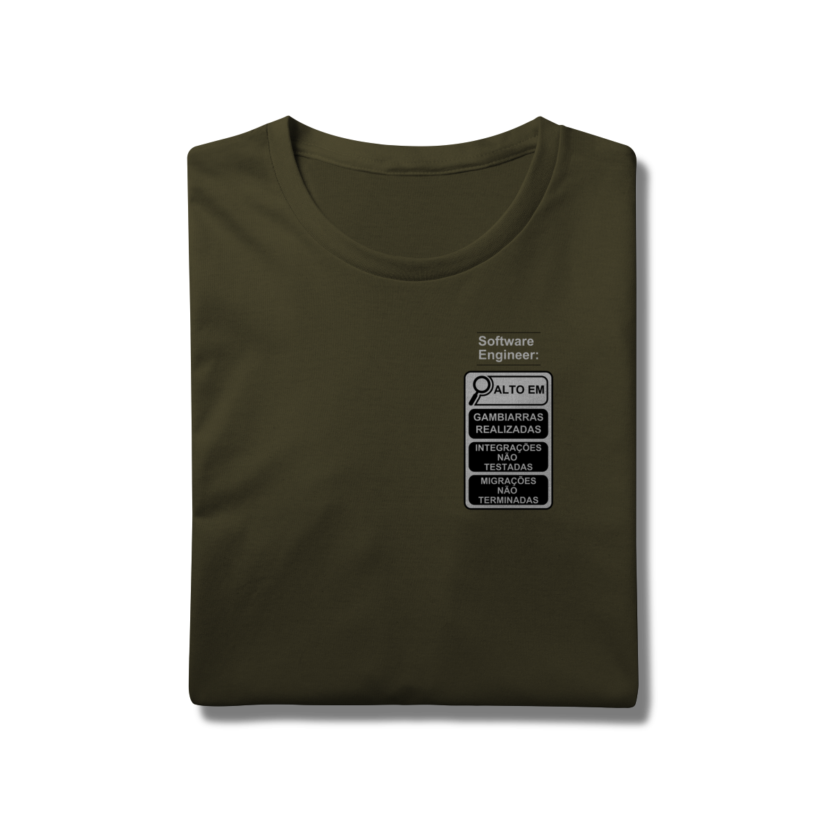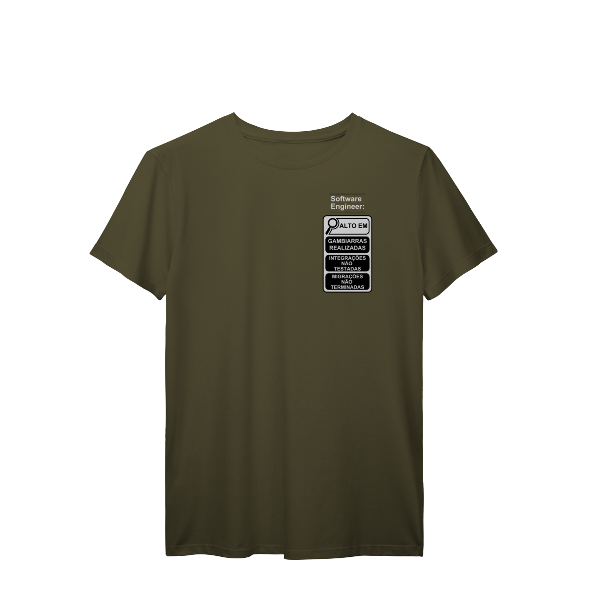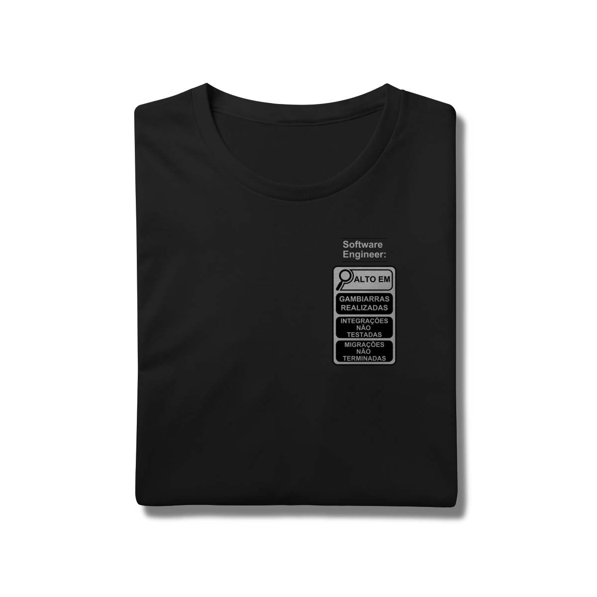 Com o estilo inspirado nos novos rótulos brasileiros, essa peça traz um humor inteligente que só quem é dev entende de verdade.