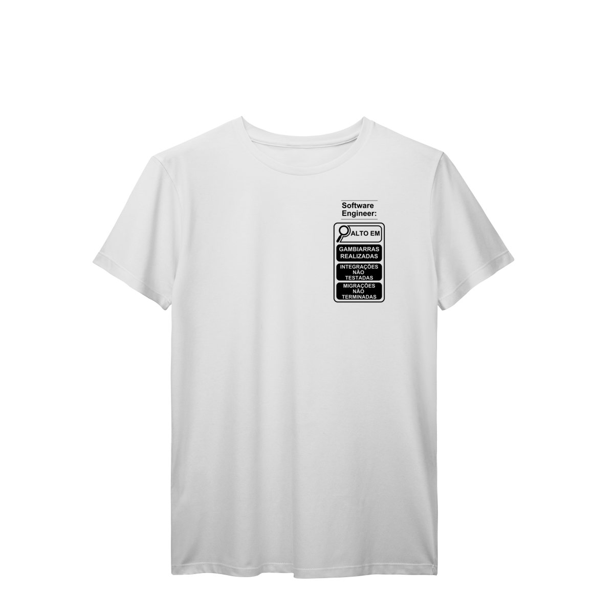 Feita para programadores, analistas, devs fullstack e qualquer amante do universo tech que encara bugs diariamente. Confortável, estilosa e com aquele toque de ironia que combina com todo desenvolvedor.
